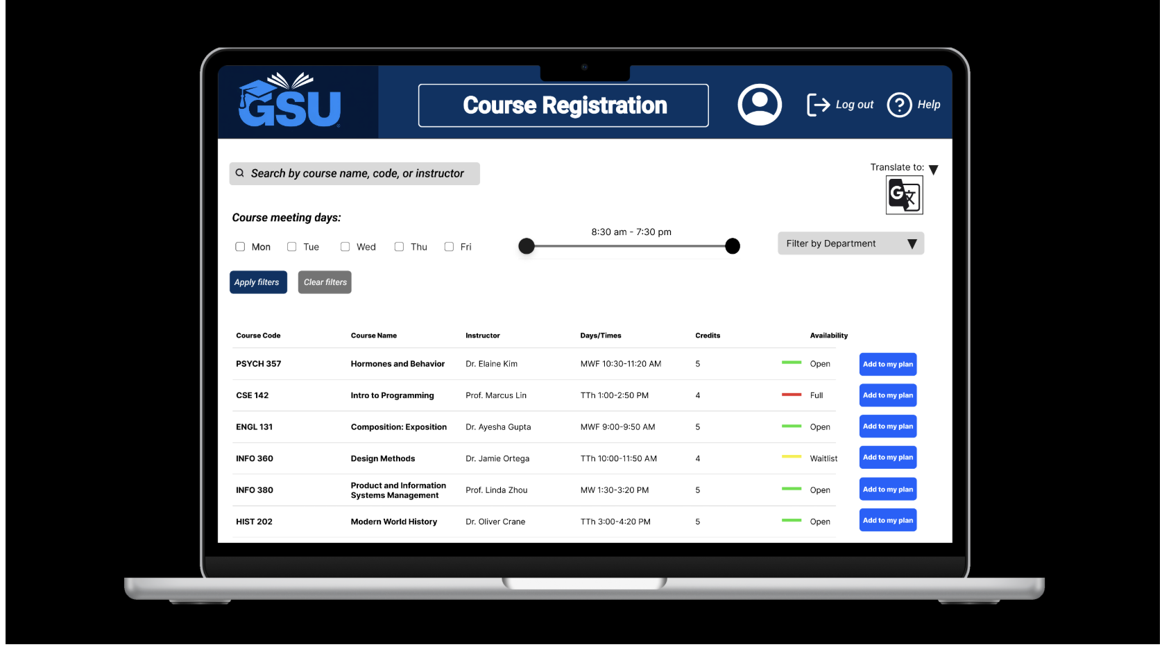 Search and Filter Courses interface designed to improve course discovery through filtering, accessibility features, and multilingual support.